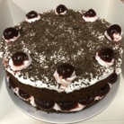Open face chocolate sponge layered with cherries, lightly whipped fresh creme and cherry liqueur. All served with generously piled chocolate shavings.